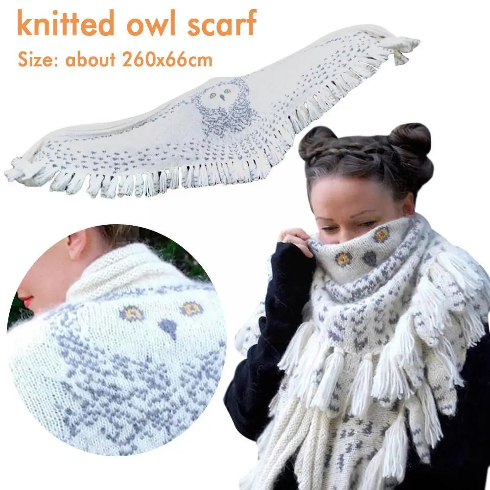 Retro Owl Scarf With Wide Spread Bird Feather Wings Feel Warm Knit Imitate Cashmere Scarf Bird Wing Scarf Winter Feather B6K5
