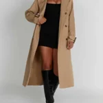 Women s Trench Coat Casual Double Breasted Long Sleeve Windbreaker Jacket with Belt Fall Trendy Jacket