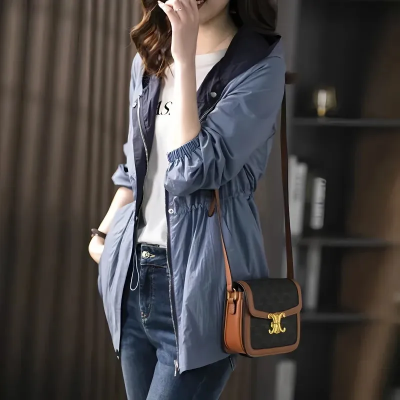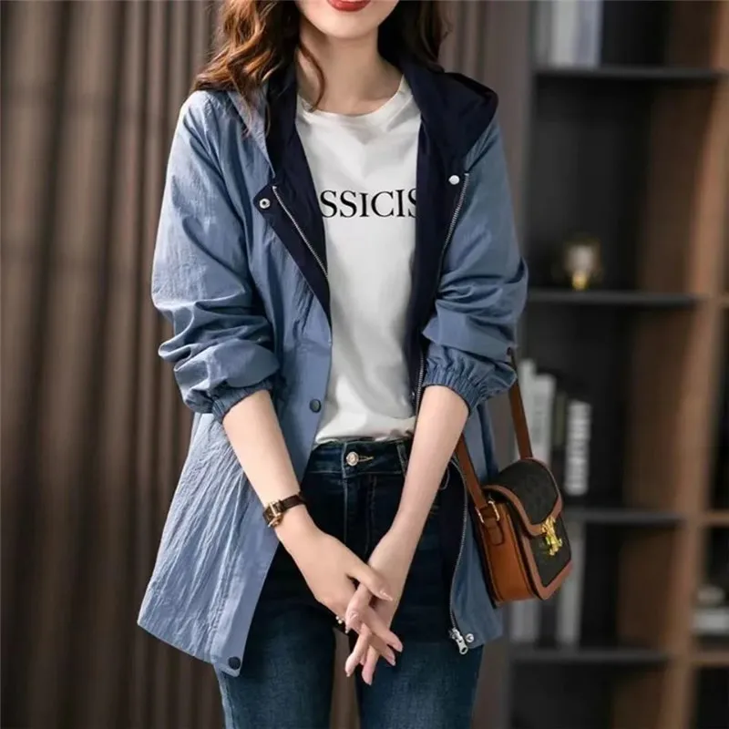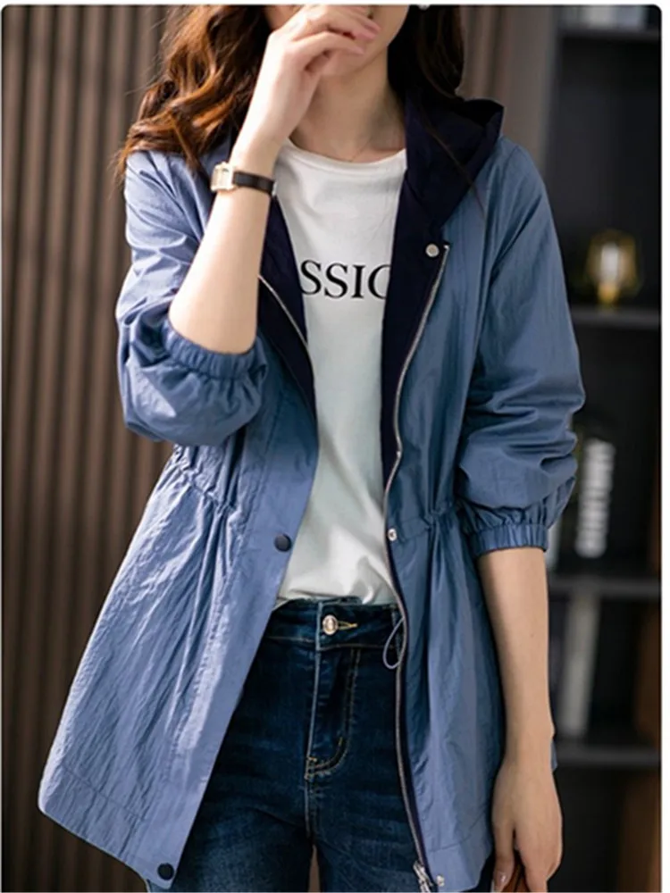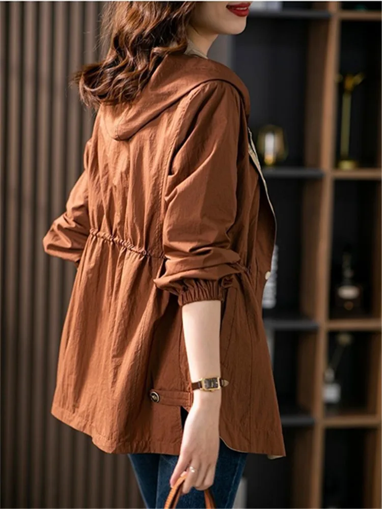 15 March 2024Women 2023 Spring and Autumn Wear Casual Hooded Jacket On Both Sides Female New Korean Version The Long Trench Coat Waist Top