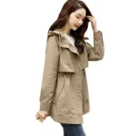 Women’s Casual Windbreaker Jackets Mid-length Casaco Feminino 2023 Spring Autumn New Loose Waist Hooded Coat Outerwear Female