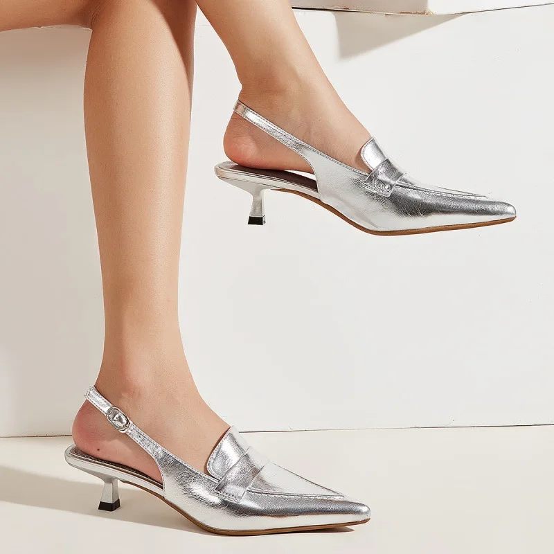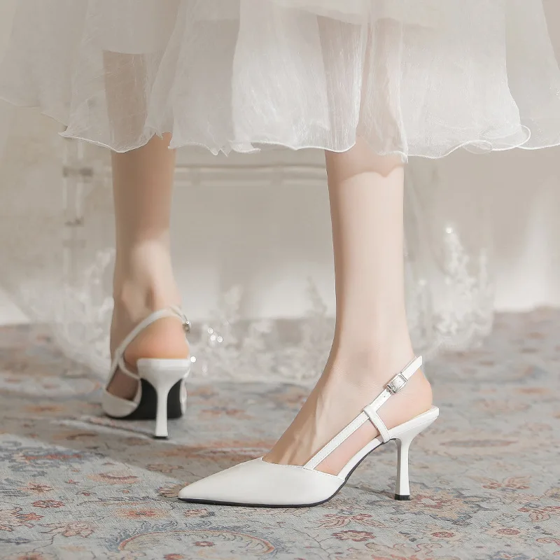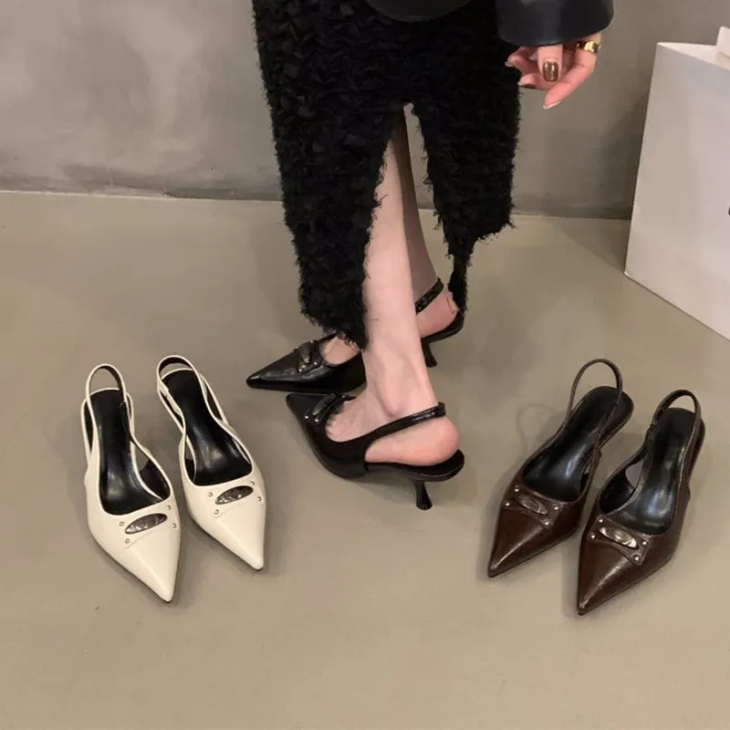 Women’ s Leather High Heels Sexy Pointed Toe Heeled Slingback Shoes 2024 Spring Autumn New Ladies Office Pumps Casual Shoes